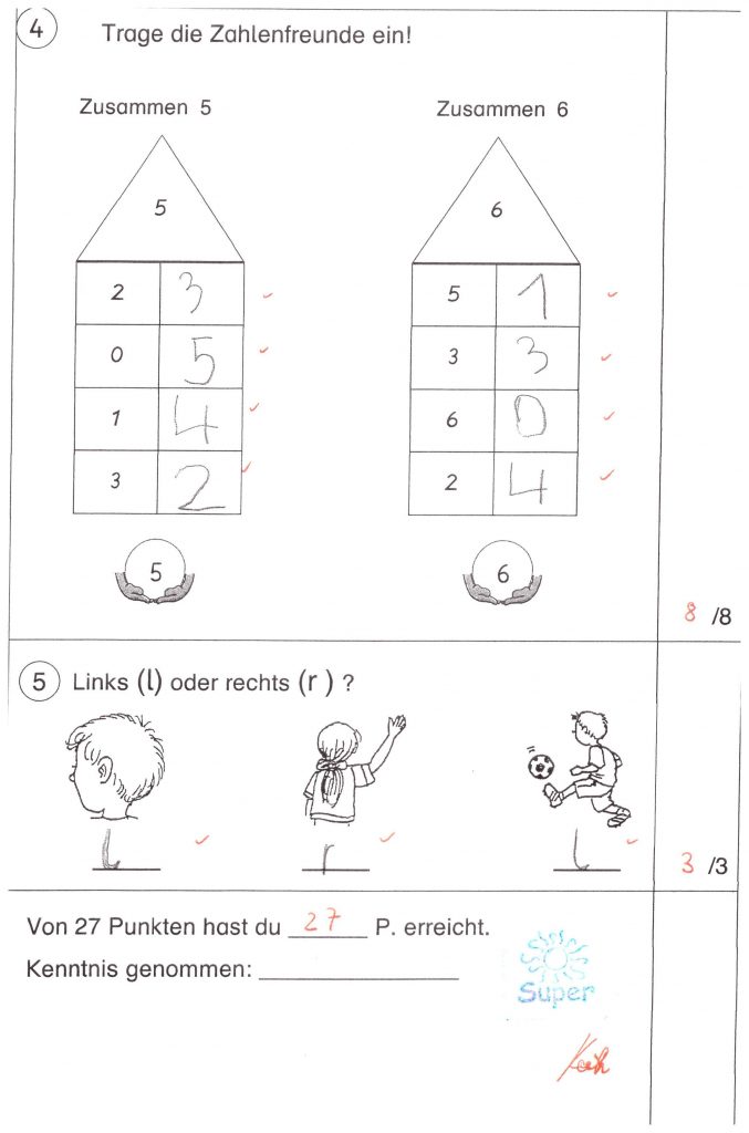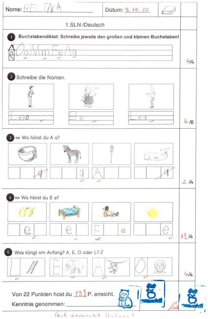 Mitte Oktober wurden von unseren Kleinen die ersten schriftlichen Leistungsnachweise in Deutsch und Mathematik ihres Lebens ‘abverlangt’. Darüber informiert wurden wir erst durch eine Email der Klassenleitung. Diese Email hat uns den Eindruck vermittelt, als gäbe es ein kollektives Klassenversagen bei den Tests.