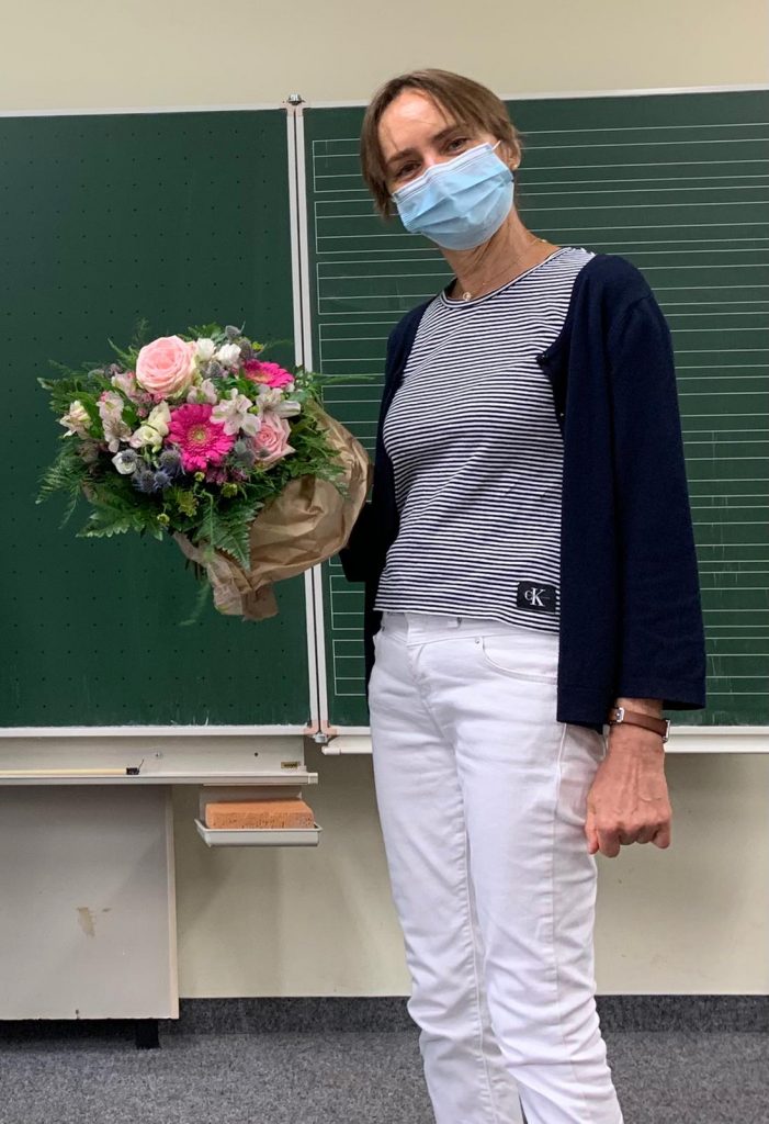 FĂŒr Frau KĂ€stner-Kordowske gab es noch einen Blumenstrauss von der Klasse als kleines Dankeschön fĂŒr ein erfolgreiches erstes Schuljahr.